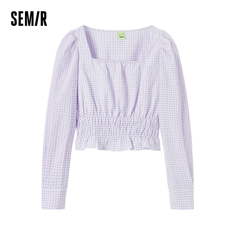 送料無料 Semir 長袖シャツ女性ショートパフスリーブスクエアカラー 2023 春テクスチャシャツ ロング スプリング 春物 スクウェア AE1212777756830415246