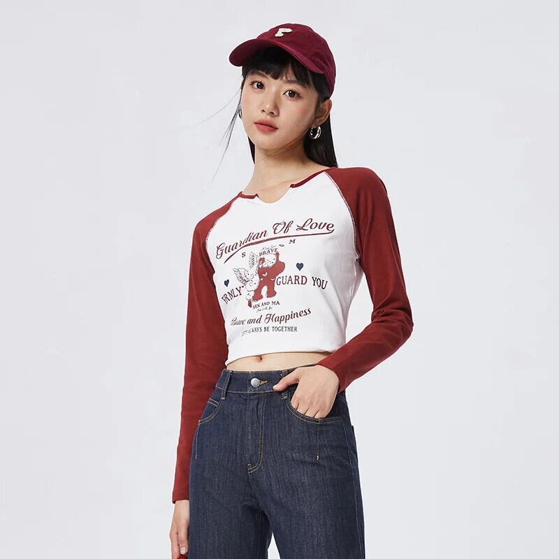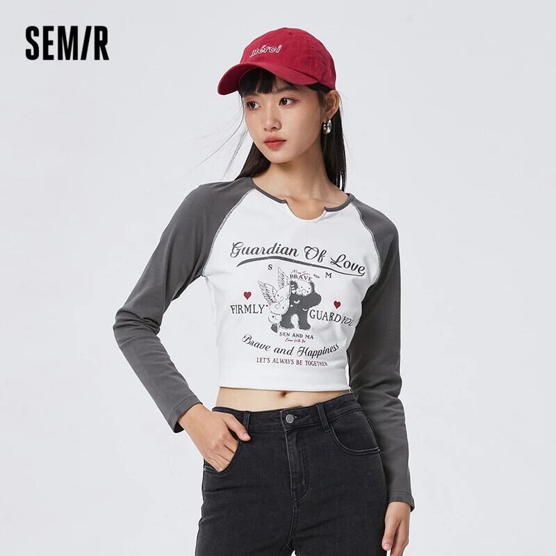 送料無料 Semir 長袖 Tシャツ女性ショートセンス 2023 春ラグランスリーブプリントプルオーバー甘くてクールな Tシャツ ロング 大人ガーリー スウィート キュート カジュアル スプリング 春物 AE1212777744246686857