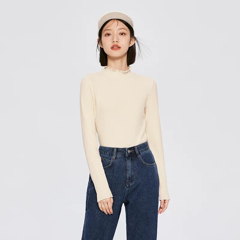 送料無料 Semir 長袖 Tシャツ女性スリムフィット襟 2022 秋と冬のスタイル固体底シャツ ロング オータム 秋物 ウィンター 冬物 ソリッドカラー AE1212777731148591409