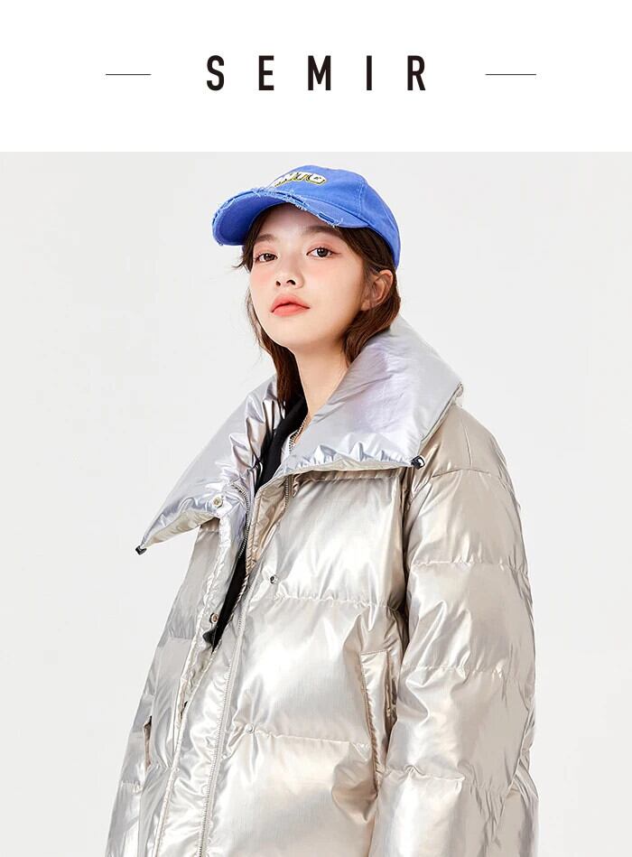 送料無料 Semir ダウンジャケット女性明るいコントラストカラーラペル 2021 冬塩ルーズパンジャケット ウィンター 冬物 AE1212777768569514726