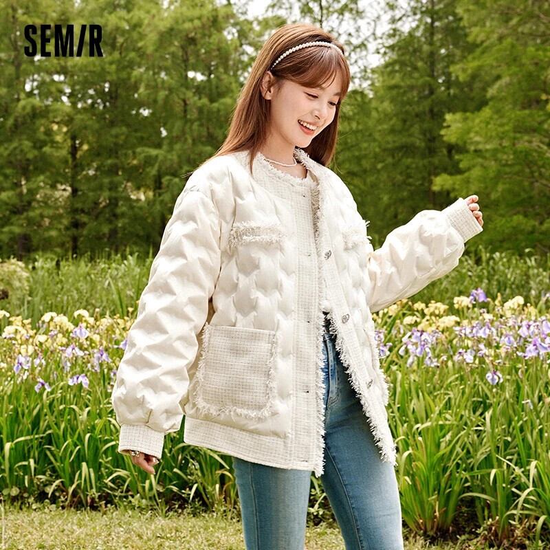送料無料 Semir ダウンジャケットの女性、気質トレンディ 2023 秋ラウンドネックルーズテルフレグランススタイルダウンジャケット オータム 秋物 Oネック AE1212777737445579767