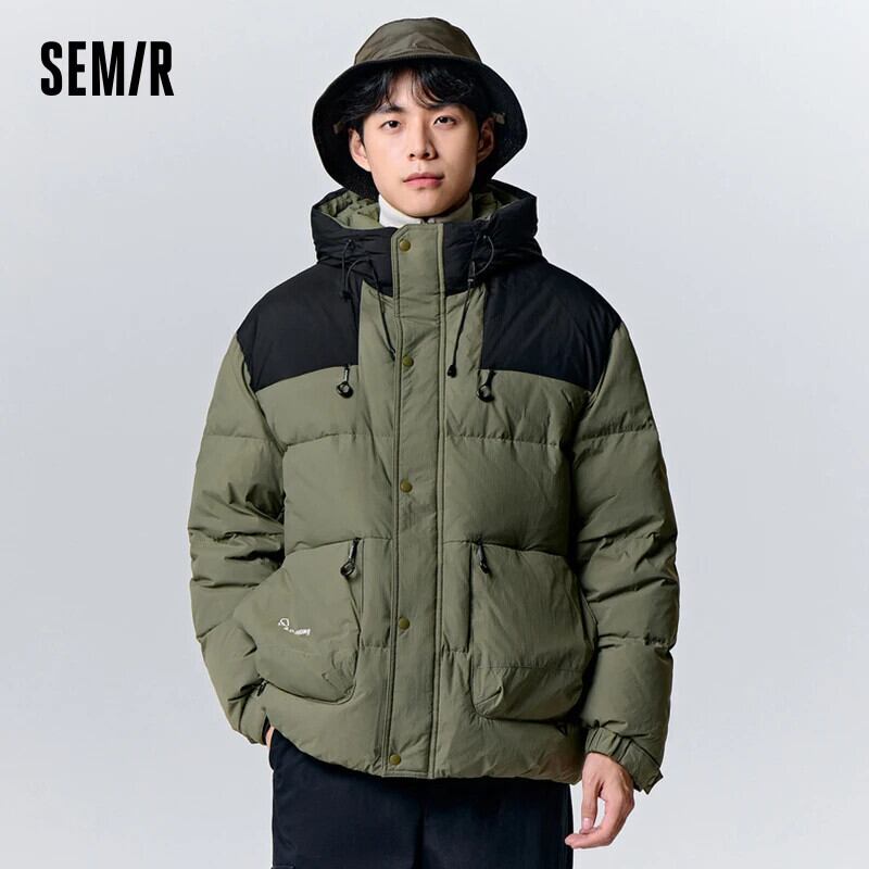 送料無料 Semir ダウンジャケット男性 2023 冬配色フード付きルーズデイリー通勤ジャケット ウィンター 冬物 AE1212777776862109670