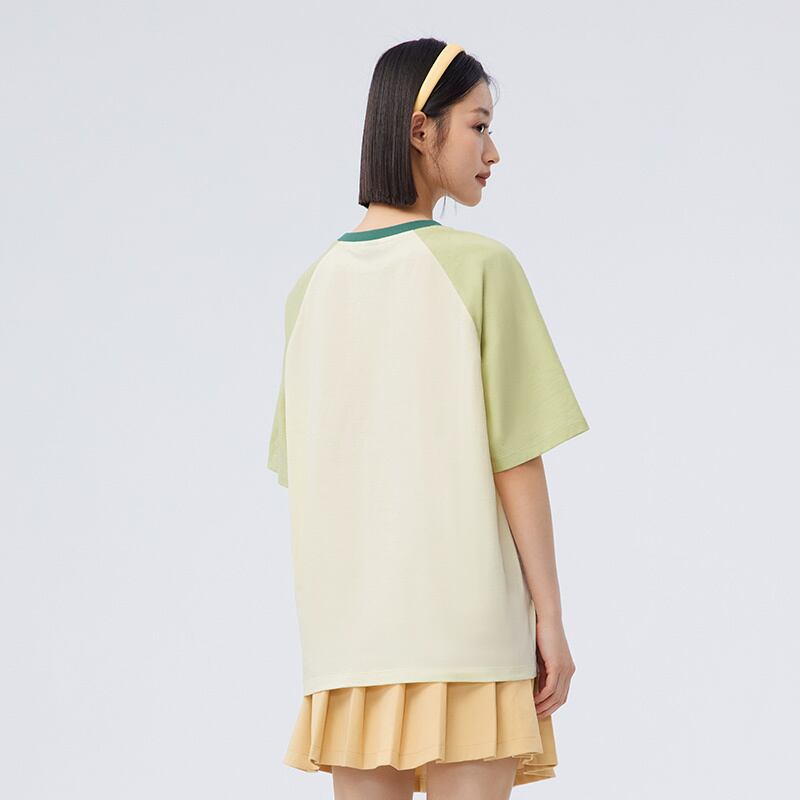 送料無料 セミール半袖 Tシャツ女性ミッドレングスカラーブロックラグラン袖ルーズ 2023 夏ピュアコットンレター Tシャツ サマー 夏物 AE121277771642790108