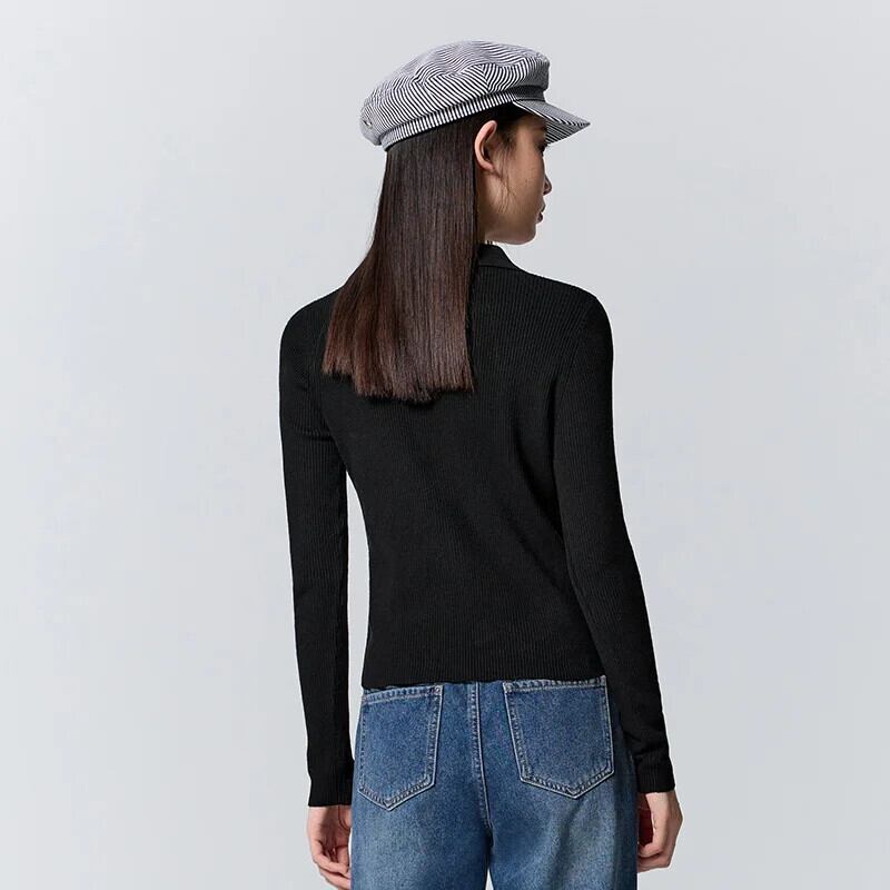 送料無料 Semir セーター女性ショートポロカラーソリッドカラースリミング冬巾着プルオーバー ウィンター 冬物 AE1212777755843011763