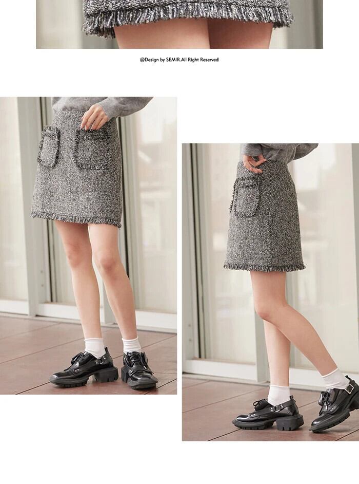 送料無料 Semir スカート女性 Raw エッジスカートレトロ 2023 冬の気質テクスチャ A ラインスカート ウィンター 冬物 Aライン AE1212777754015100795
