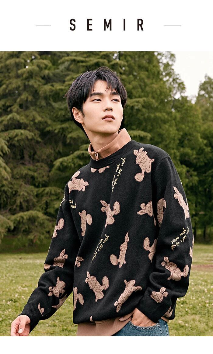 送料無料 Semir 男性セータープルオーバーセーター秋の漫画ウサギサンシャイン人格ルーズラウンドネックセーター男性 オータム 秋物 Oネック AE1212777794172928288