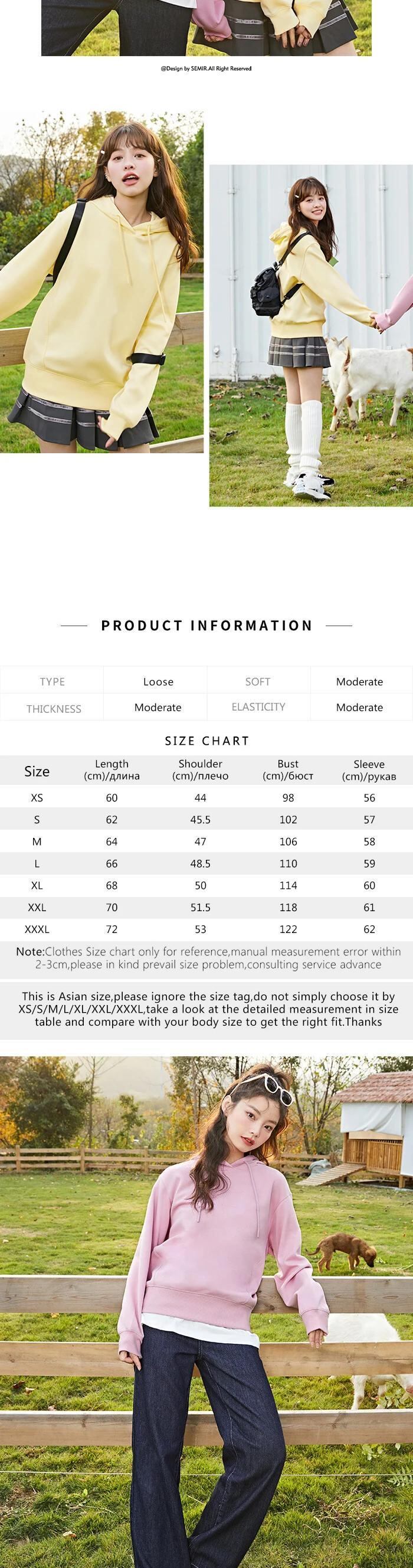 送料無料 Semir トレーナー女性フード付きベーシックトップ 2022 春無地シンプルなボトリングシャツ緩い怠惰なパーカー スプリング 春物 ソリッドカラー AE121277777991570544