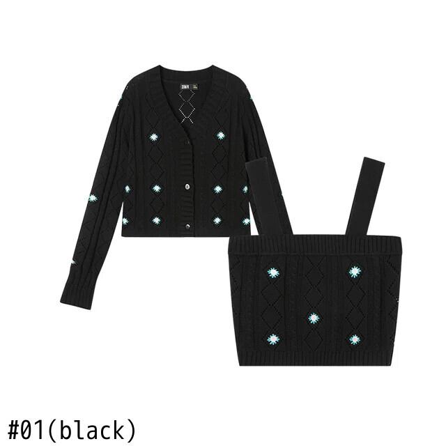送料無料 Semir ニットスーツの女性 V ネック中空カーディガン刺繍ベスト 2022 秋ショートツーピース小さな新鮮な服セット レッド オータム 秋物 Vネック AE1212777786776220170