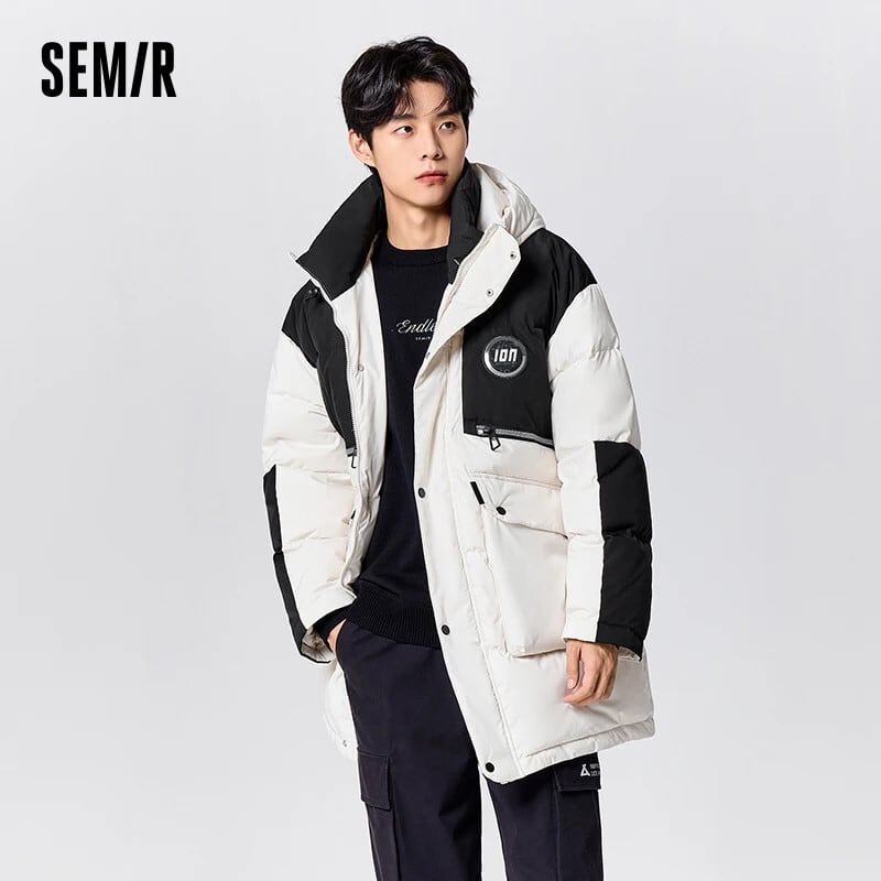 送料無料 Semir ダウンジャケット男性 2023 冬フード付きデイリーアウトドア暖かいミッドレングスジャケット ウィンター 冬物 AE1212777798023373832