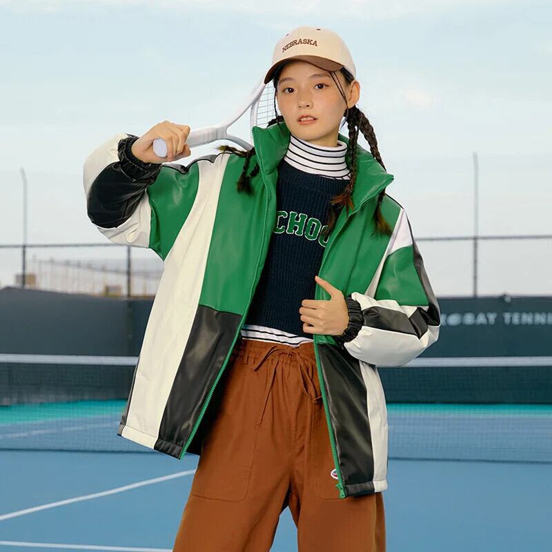 送料無料 Semir ダウンジャケット女性ミッドレングス PU 模造革カラーマッチングスタンドカラー 2023 冬ルーズトレンディトップ ウィンター 冬物 レザー AE1212777747196250836