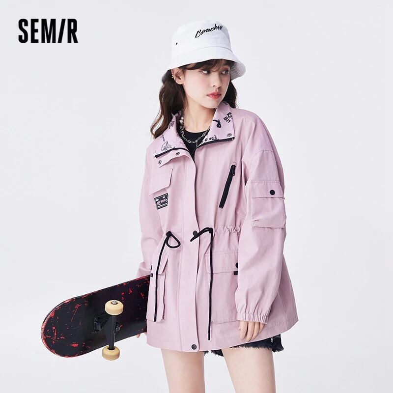 送料無料 Semir 女性コートミッドレングスオーバーサイズ St-Up 襟 Hsome ツーリングスタイル秋甘いウエストウエストトップコート女性 大人ガーリー スウィート キュート カジュアル オータム 秋物 AE1212777722421705082