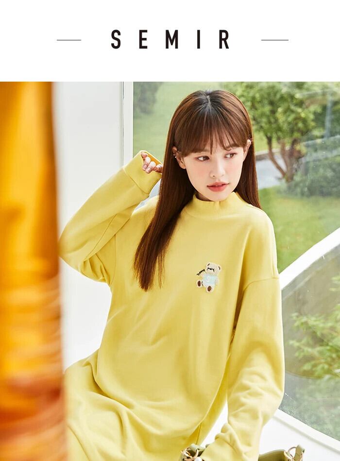 送料無料 Semir レディース ワンピース ドレス ハーフカラー ルーズ ニット ドレス 秋 2023 オータム 秋物 AE121277778669907273