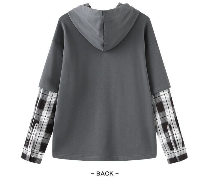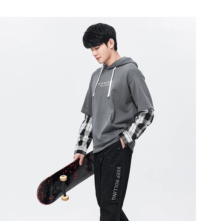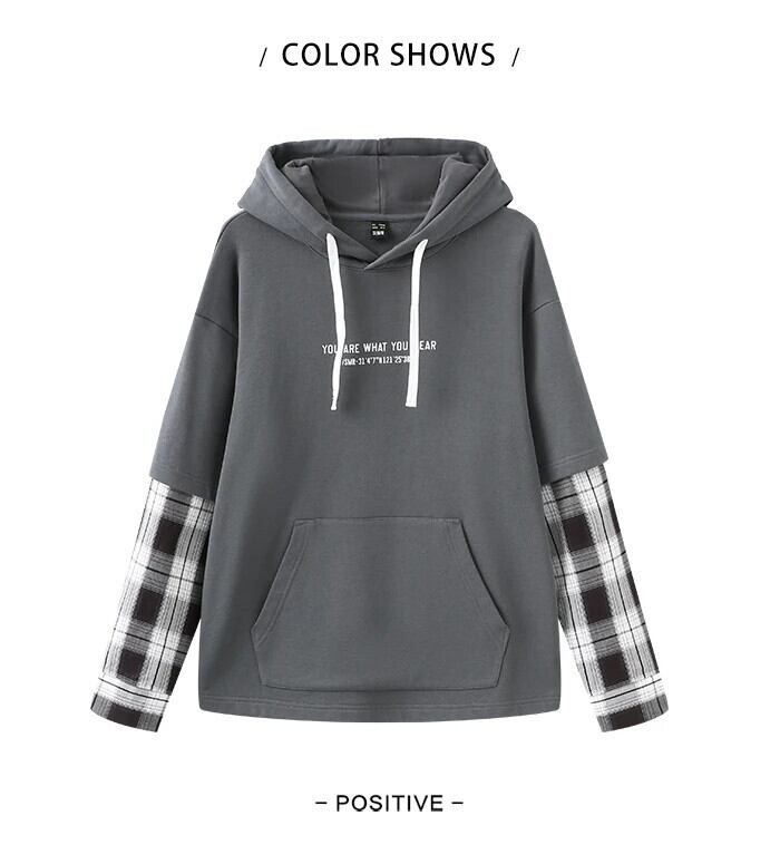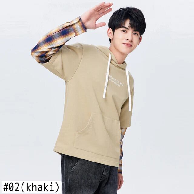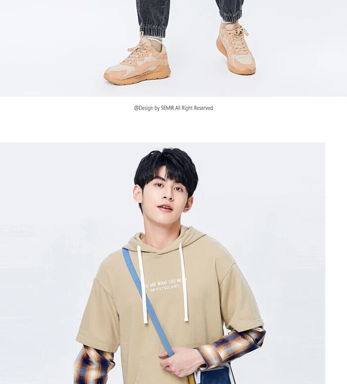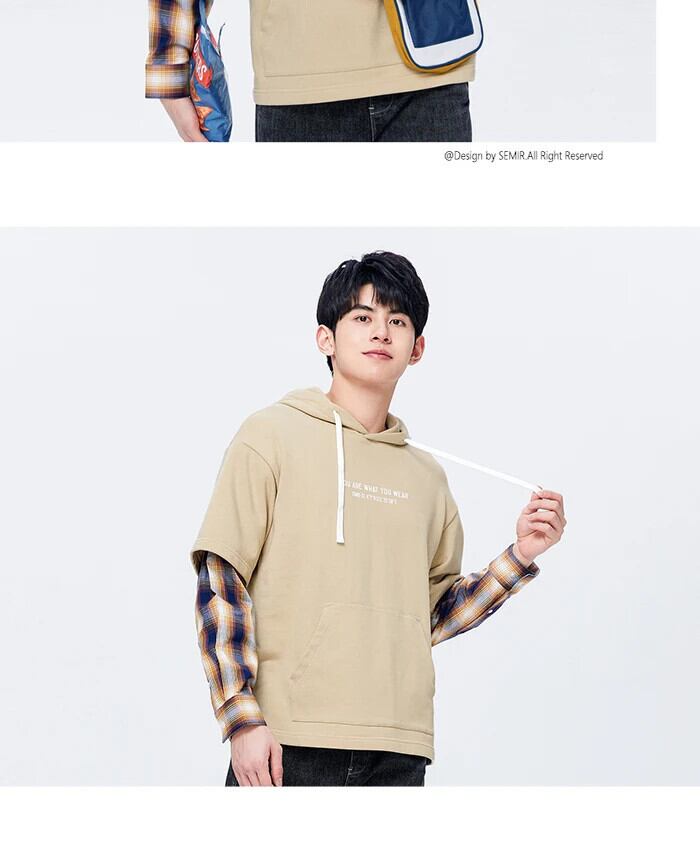 送料無料 Semir 男性トレーナー秋のコントラストカラースプライシング偽ツーピース男性フード付きプルオーバートップセーター男性 オータム 秋物 AE1212777756045862618