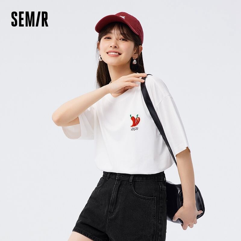 送料無料 Semir 半袖 Tシャツ女性クール抗菌 2023 夏ルーズ刺繍 Tシャツ レッド サマー 夏物 AE121277775508906496