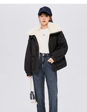 送料無料 Semir 綿ジャケット女性模造ウサギの毛皮の襟 2023 冬シンプルなハンサムルーズコットントレンディな多用途ジャケット ウィンター 冬物 AE1212777716938169507