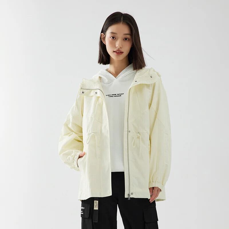 送料無料 Semir 女性コートミッドレングスウエストウエスト気質秋ルーズフード付きテクスチャトップシンプルな多用途コート女性 オータム 秋物 AE1212777787566928098