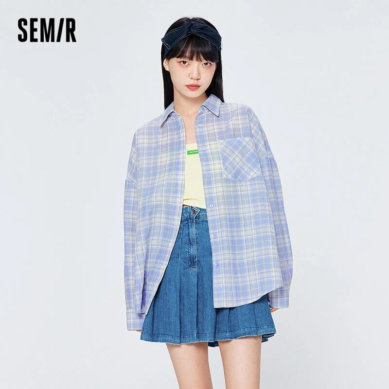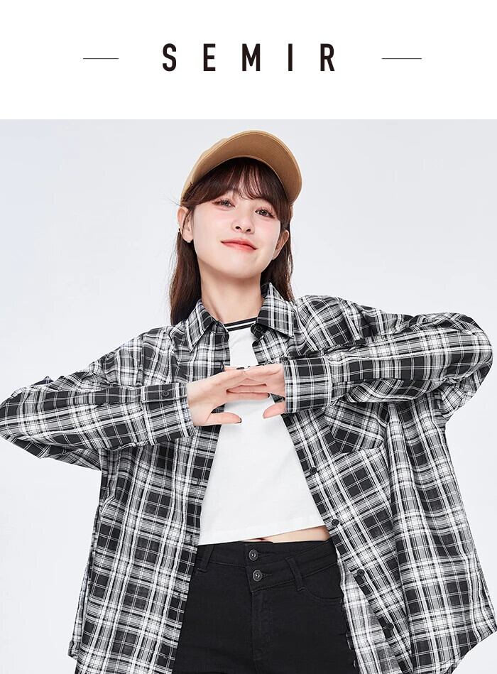 送料無料 SEMIR 長袖シャツ レディース ミドル丈 オーバーサイズ スリットスタイル 2022 夏 質感チェック柄シャツ ロング レッド サマー 夏物 AE1212777780631300812