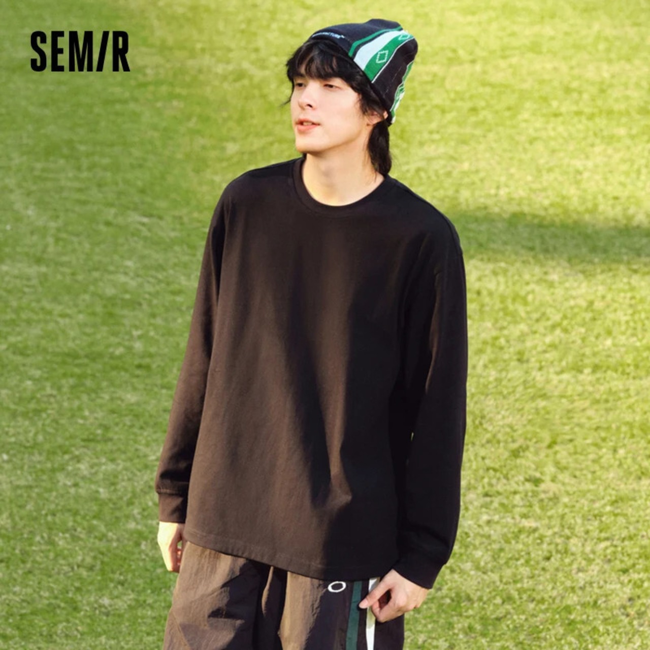 送料無料 Semir 長袖 Tシャツ メンズ 2023 冬 シンプル 無地 Clic ルーズ 長袖 Tシャツ ロング ウィンター 冬物 ソリッドカラー AE1212777710433226760