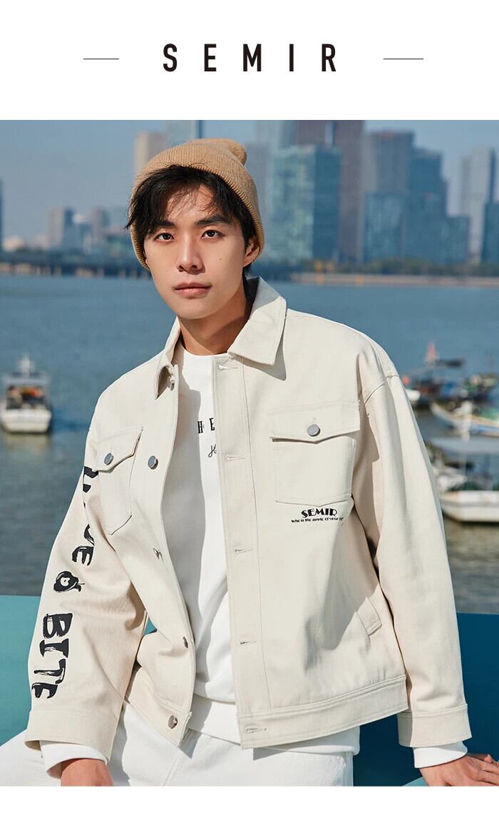 送料無料 Semir ジャケットメンズ 2023 春ルーズシンプルトレンドピュアコットンラペルジャケット スプリング 春物 AE1212777784049070249