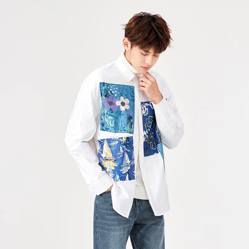 送料無料 Semir 長袖シャツ男性アートグラフィティプリント 2021 冬ルーズコットンマンシャツトレンド ロング ウィンター 冬物 AE1212777744008567168