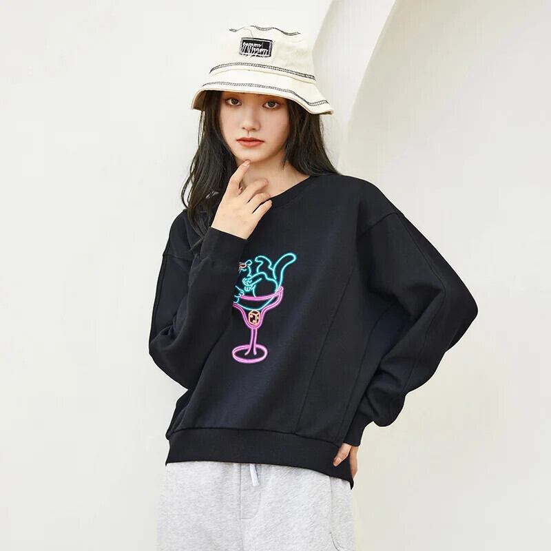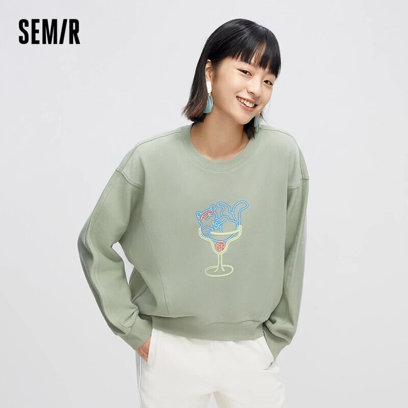 送料無料 Semir トレーナー女性春と秋の薄いセクション 2021 春と秋黒ショートトップ女性のパーカー ブラック スプリング 春物 オータム 秋物 AE1212777798446300700