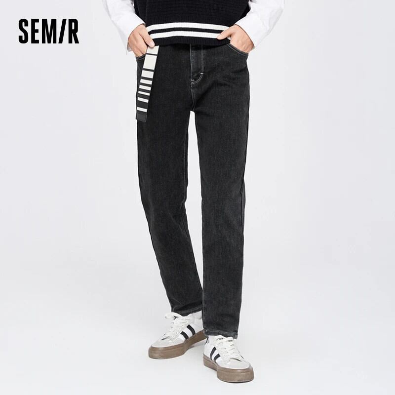 送料無料 Semir ジーンズメンズ 2023 冬クール刺繍レトロフリーステーパードパンツ レッド ウィンター 冬物 AE1212777794773257994