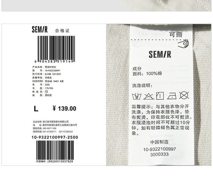 送料無料 Semir 半袖 Tシャツメンズバイタリティ 2023 夏ルーズコットンマンニットトップ ショート ハーフスリーブ サマー 夏物 AE1212777761353812898