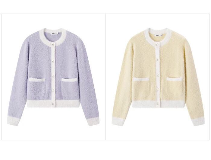 送料無料 Semir ニットカーディガン女性ショートソフトワックス状優しい 2023 冬コントラストカラーフレグランスラウンドネックセーター ウィンター 冬物 Oネック AE1212777730577277201