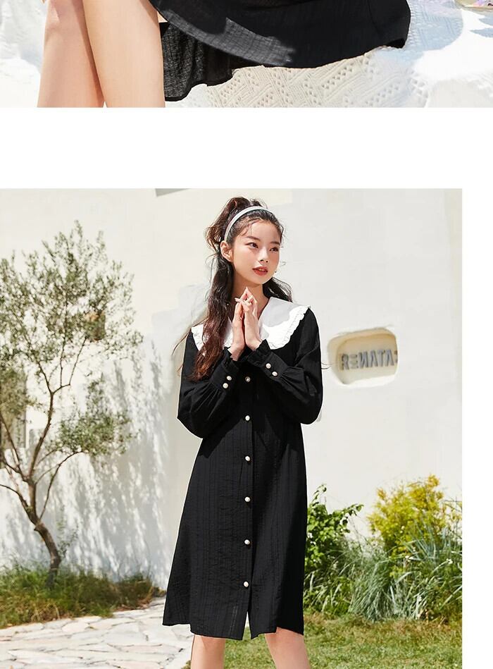 送料無料 Semir ドレスの女性 2022 春と秋の黒のロングスカートコントラストカラー人形の襟リトルブラックドレスガールテンペラ スプリング 春物 オータム 秋物 AE1212777765667700987