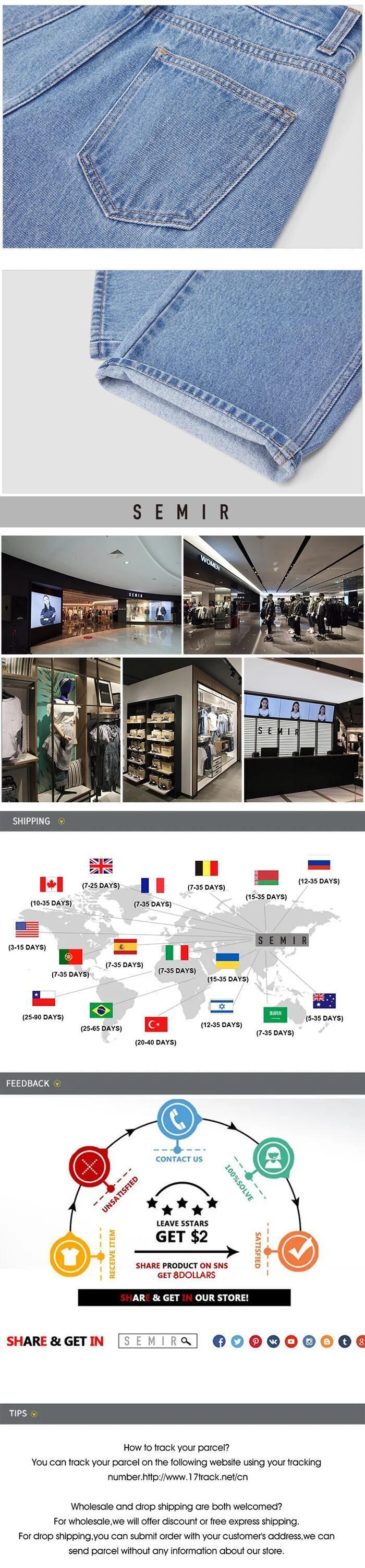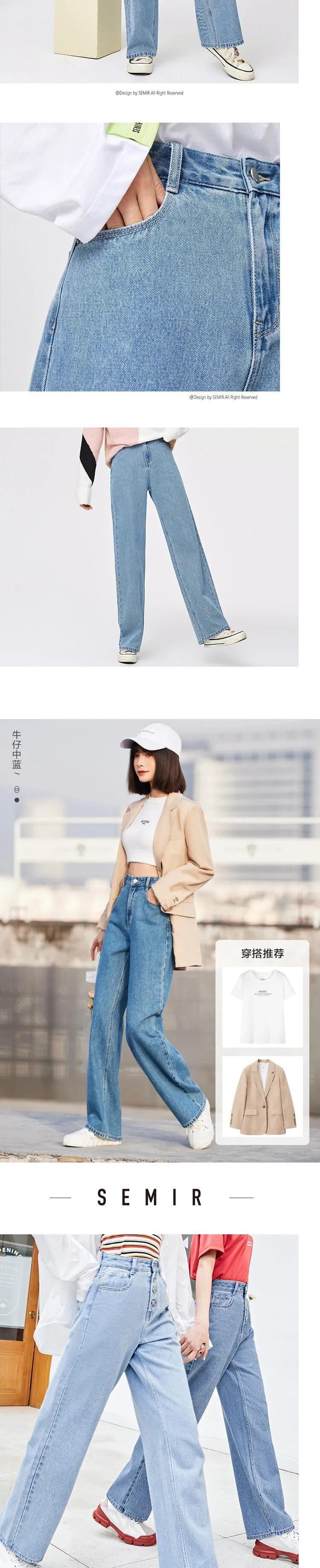 送料無料 SEMIR ジーンズデニム女性綿ワイドレッグパンツウエストスリムルーズズボンイン潮春パンツ コットン スプリング 春物 ワイドパンツ AE1212777784428713774