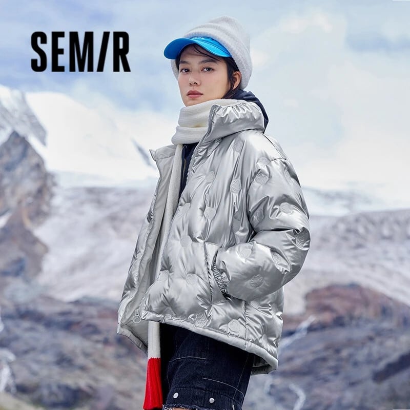 送料無料 Semir ダウンジャケット女性スタンドアップカラー光沢感 2023 冬ルーズ巾着薄手コート ウィンター 冬物 AE1212777719705753523