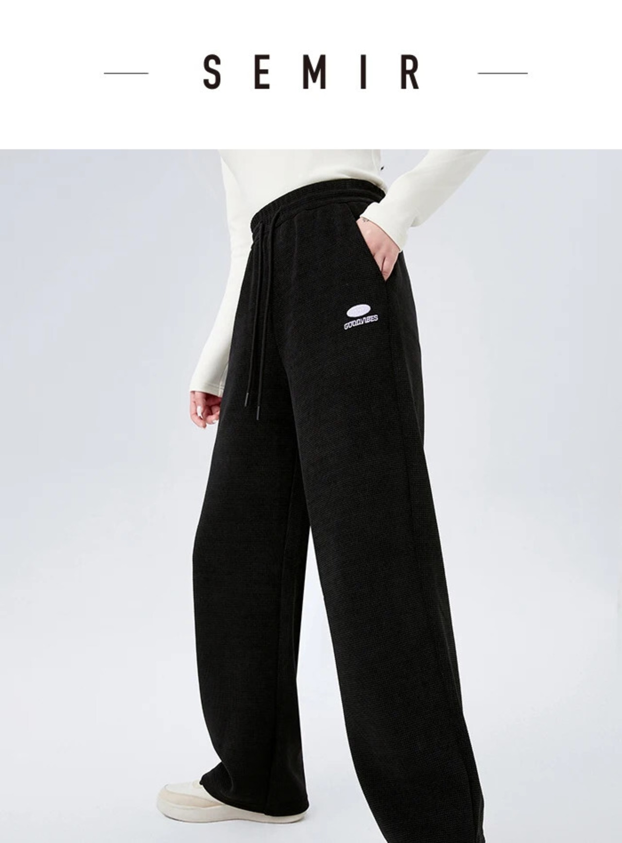 送料無料 Semir パンツ女性テクスチャーパンツ刺繍冬の気質シェニールワイドレッグパンツ レッド ウィンター 冬物 ワイドパンツ AE1212777729128595675