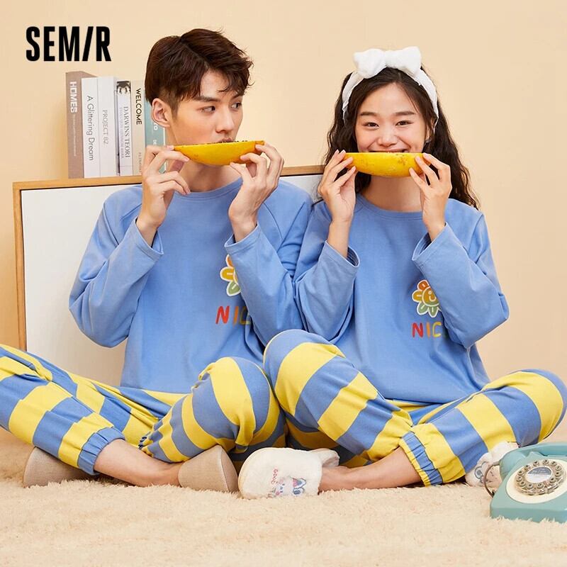 送料無料 Semir パジャマ男性綿愛好家の秋のスーツ漫画ストライプ長袖ホーム服春と秋のスタイルの男性 ロング コットン スプリング 春物 オータム 秋物 AE1212777723069303885