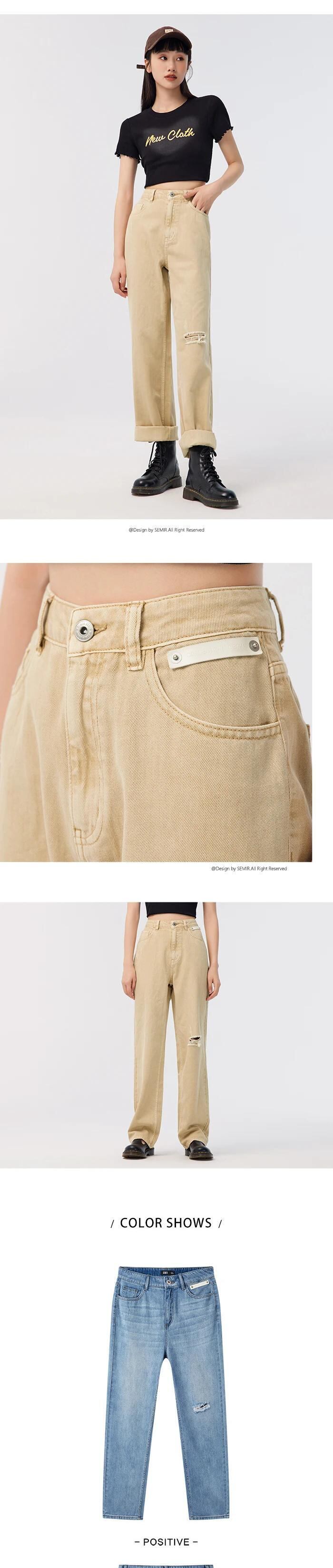 送料無料 Semir ジーンズ女性フロアモップ 2023 夏使い古された穴ストレートレッグパンツ サマー 夏物 AE121277772461771912