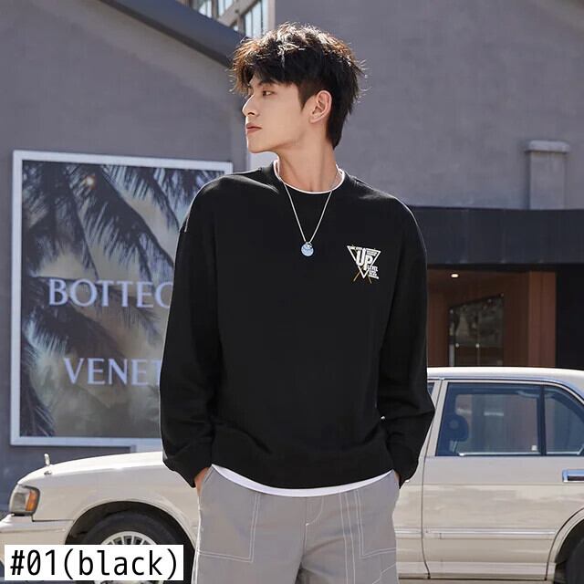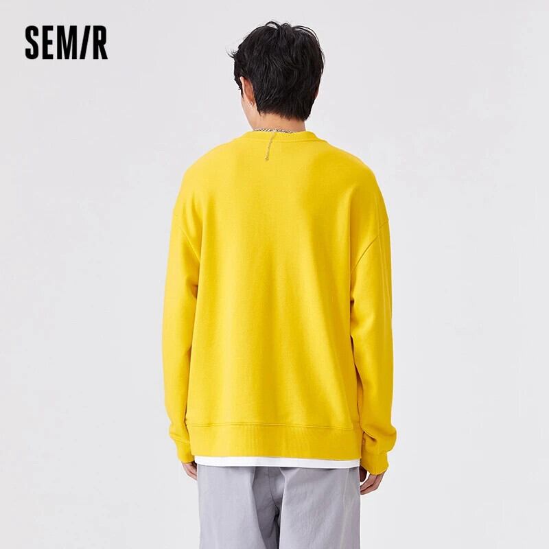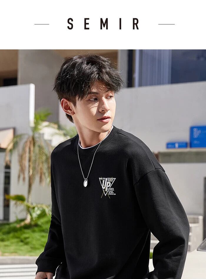 送料無料 SEMIR トレーナー男性偽ツーピーススプライシング秋 2021 ルーズラウンドネックパーカーメンズトレンディな黒ストリート服 ブラック オータム 秋物 Oネック AE1212777791131096228