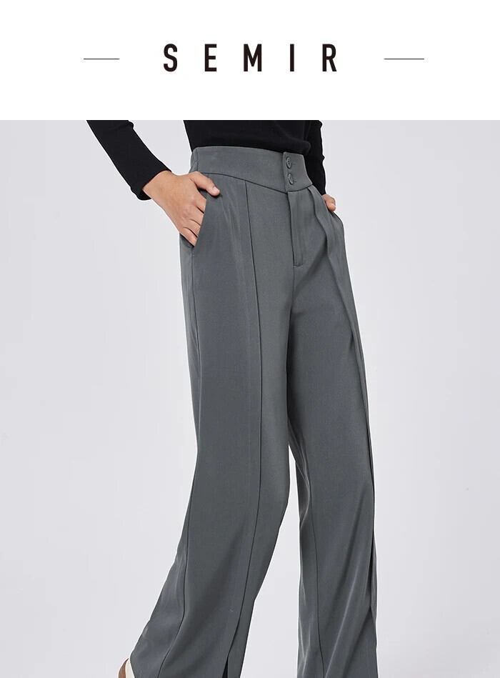 送料無料 Semir 2023 女性パンツ春ワイドレッグパンツ通勤無地スリットズボンイージーケアパンツ女性 スプリング 春物 ソリッドカラー AE1212777786568659935