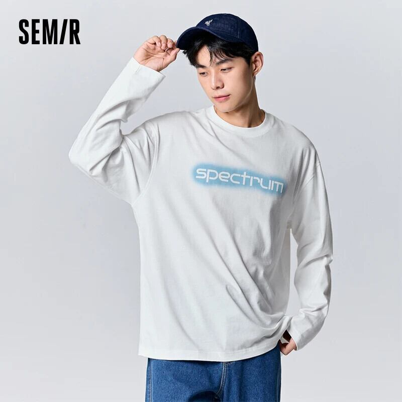 送料無料 Semir 長袖 Tシャツメンズ 2023 冬レタープリントトレンディなコットン長袖 Tシャツ ロング ウィンター 冬物 AE1212777751968725082