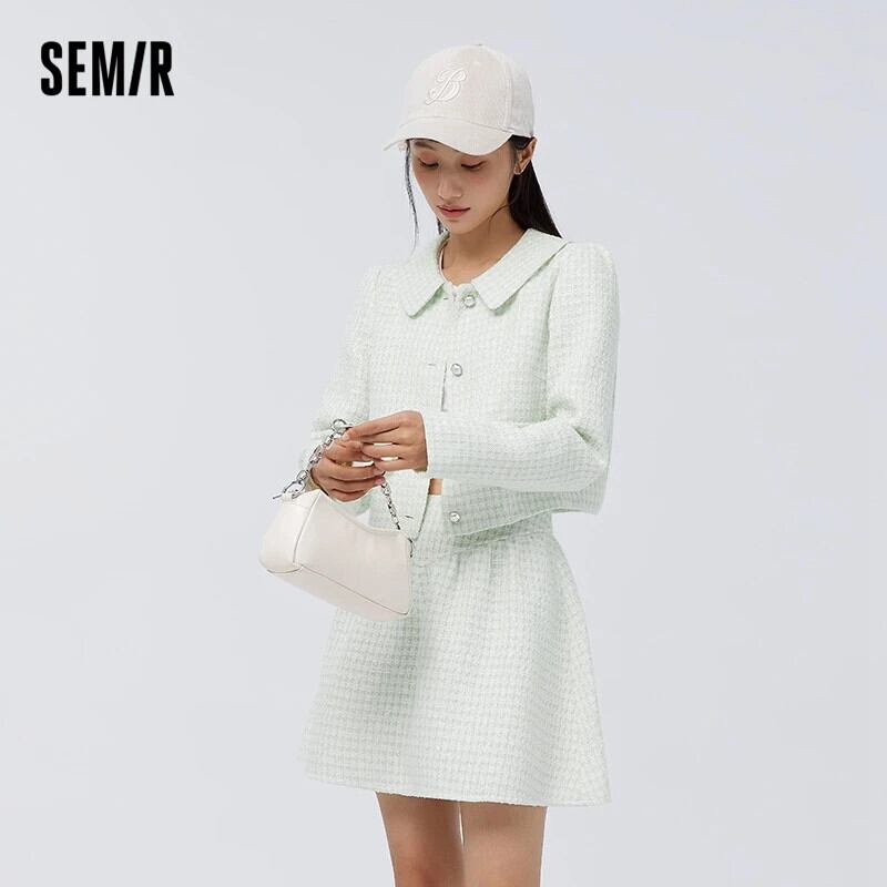 送料無料 Semir スーツ女性ショートコート A ラインスカート 2023 春スタイルスリムフィット 2 点セット小さな香り スプリング 春物 Aライン AE1212777769325489471