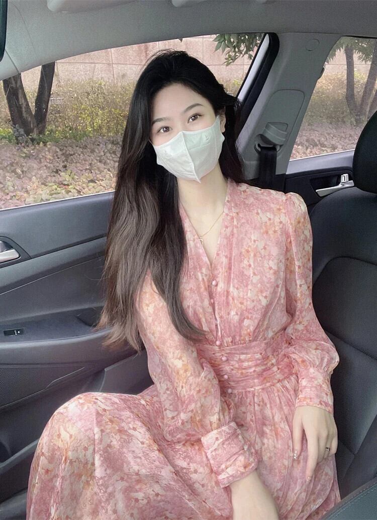 送料無料 ヴィンテージ V ネックドレスプリントスタイル長袖シフォンドレス女性ピンク Vestidos 服夏 2022 ロング サマー 夏物 Vネック ビンテージ AE008878784344865602