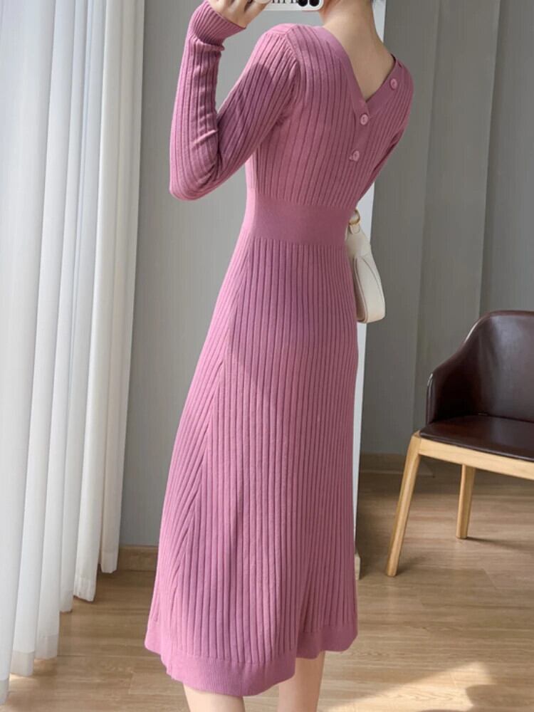 送料無料 V ネック長袖ボタンニットドレス女性スリムフィットセーターイブニングミディボディコンドレス冬秋 ロング オータム 秋物 ウィンター 冬物 Vネック AE008878757297569400 | 女性の為の通販サイト-fashion navi
