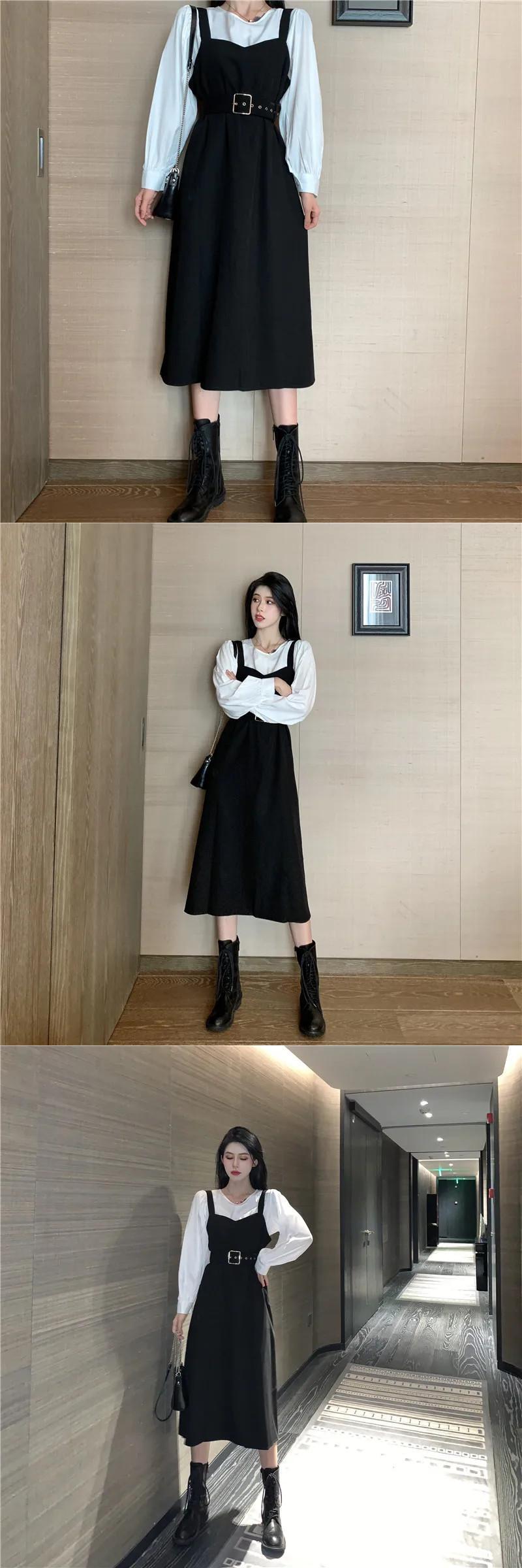 送料無料 オフィスレディミディドレス女性人格パーティードレス秋 O ネック長袖ワンピースドレス服 ロング オータム 秋物 Oネック 会社 学校 通勤や通学にも AE008878778997069637