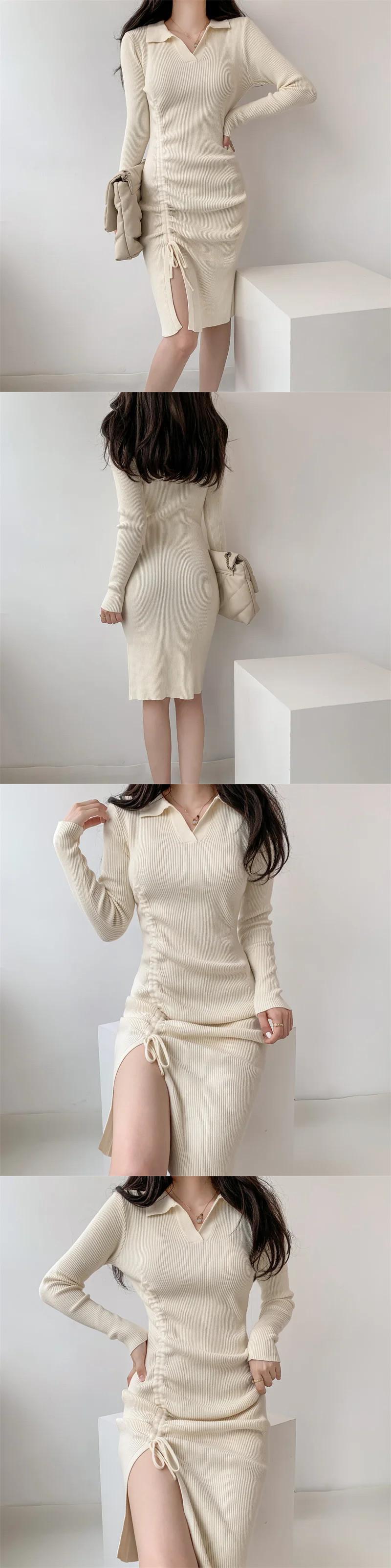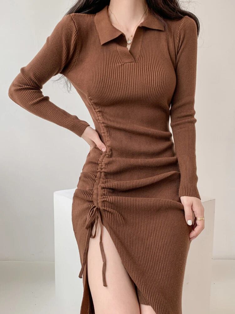 送料無料 ヴィンテージセクシーなスリムニットセーターポロイブニングマキシドレス女性ドローストリングボディコンミニドレス冬 2022 ウィンター 冬物 ビンテージ AE008878717870008469
