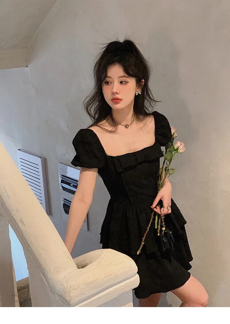 送料無料 ヴィンテージフランスの女性のドレス女性パーティーオフィスレディショートパフスリーブゴシックリボンミニドレス 2022 夏ブラック サマー 夏物 ビンテージ 会社 学校 通勤や通学にも AE008878746154137930 | 女性の為の通販サイト-fashion navi
