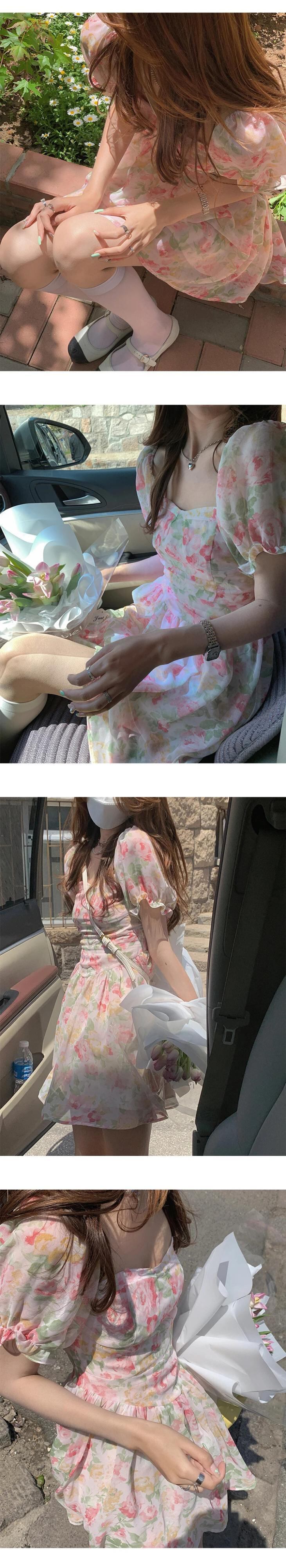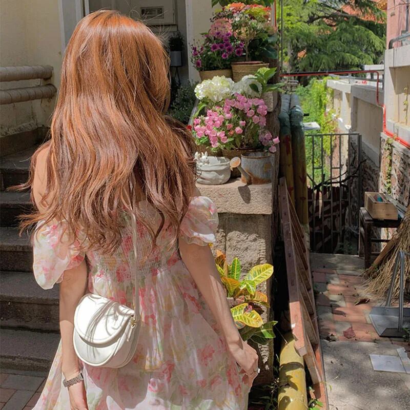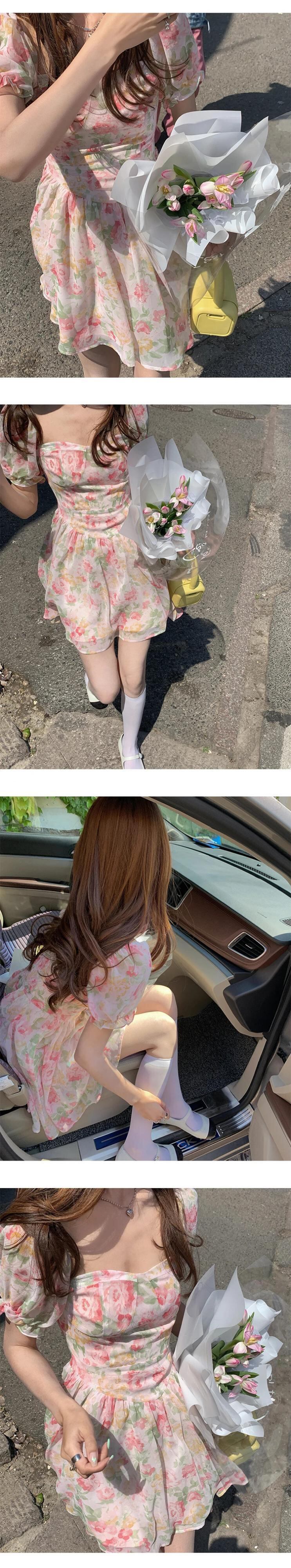 送料無料 ヴィンテージフレンチフローラルワンピースドレスドレス女性パーティーパフスリーブビーチドレス s 夏 2021 サマー 夏物 花柄 ビンテージ AE008878753618315590