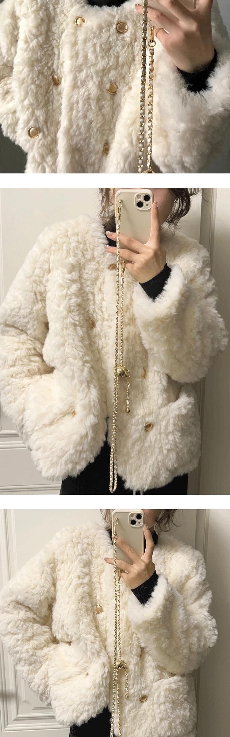 送料無料 原宿厚く暖かいラムウールコート女性ルースホワイトフェイクファージャケット Casacos Femininos 冬 2022 ゴス かわいい ウィンター 冬物 AE008878731370850273