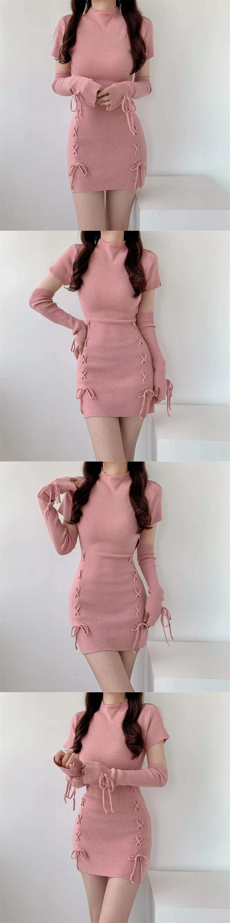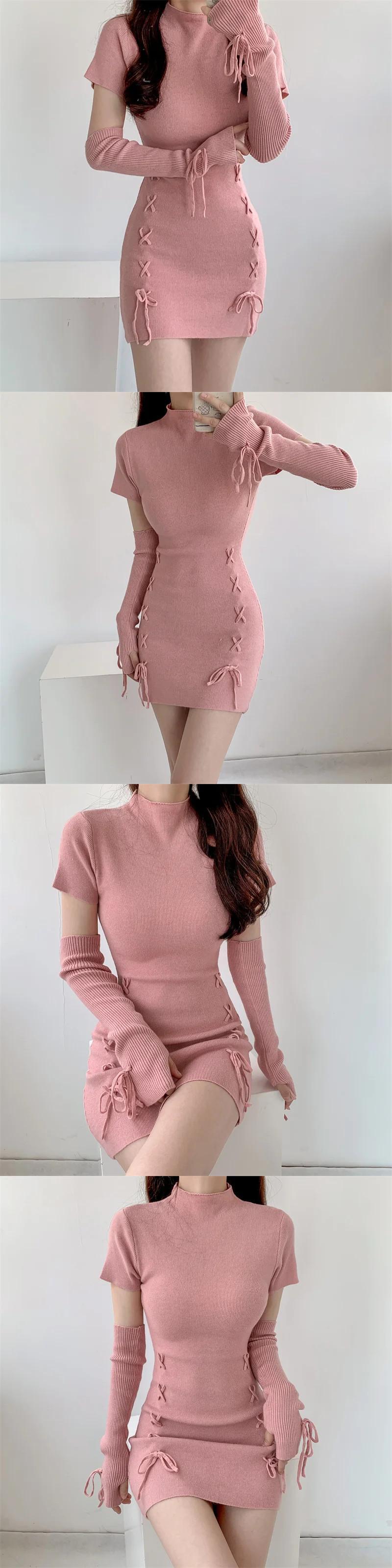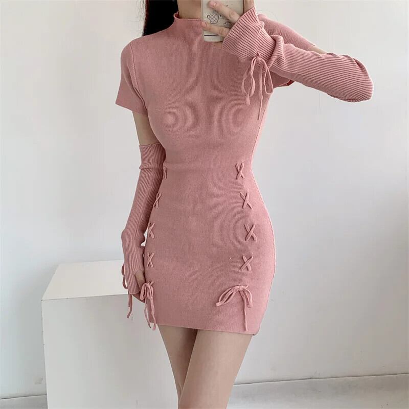 送料無料 甘いかわいい O ネック包帯ボディコンドレス女性独立したノースリーブセーターピンクのセクシーなニットミニドレス冬 大人ガーリー スウィート キュート カジュアル ウィンター 冬物 Oネック AE008878749355983669