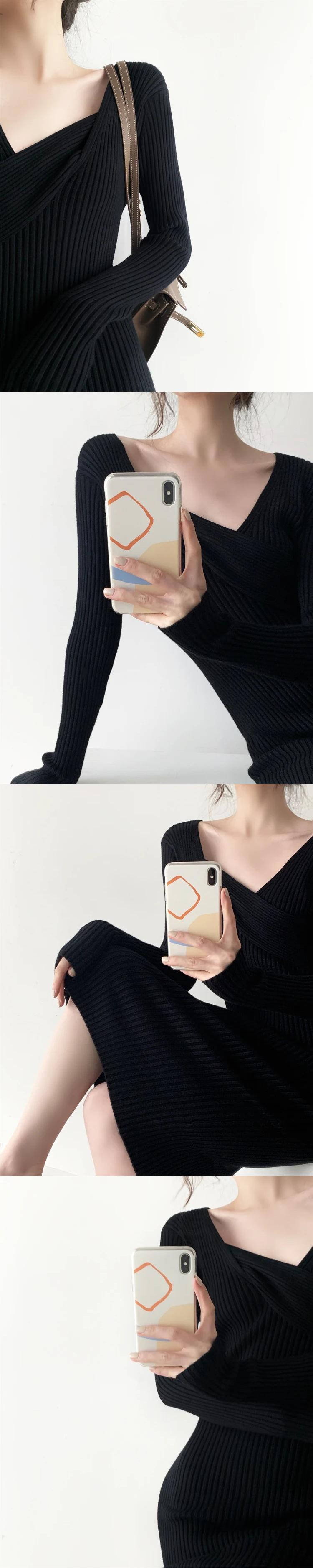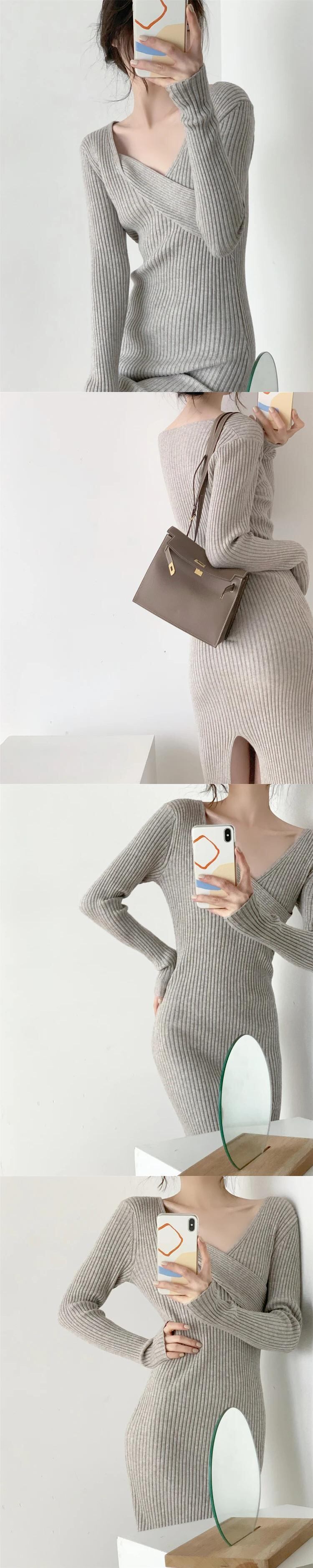 送料無料 ヴィンテージスタイルのセクシーなニットボディコンドレス女性秋冬 2022 ストリートスリム V ネック長袖セーターロングドレス オータム 秋物 ウィンター 冬物 Vネック ビンテージ AE008878771155200477 | 女性の為の通販サイト-fashion navi