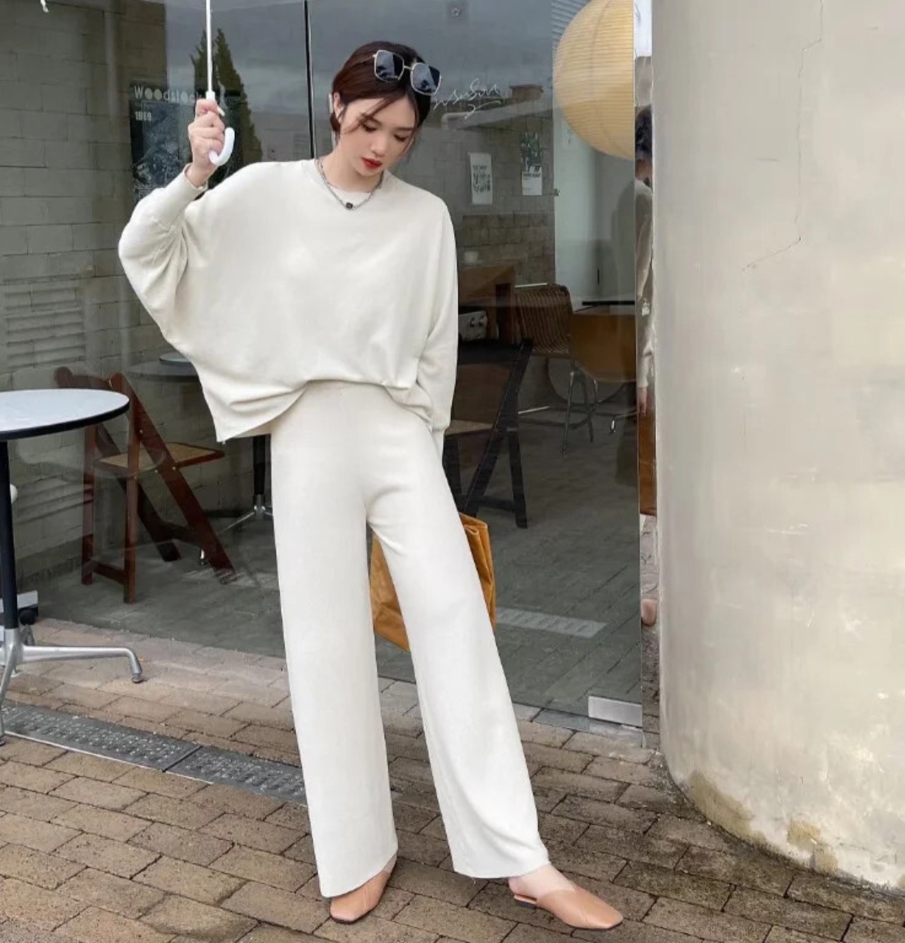 送料無料 ツーピースセット女性の襟トップスとワイドレッグパンツ衣装ルーズスーツ 2022 秋ニットリブパンツセット オータム 秋物 ワイドパンツ AE008878752453491163 | 女性の為の通販サイト-fashion navi