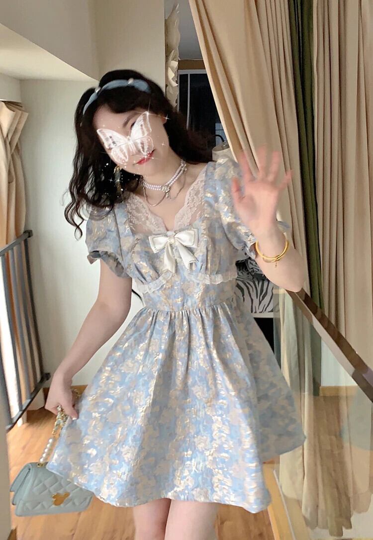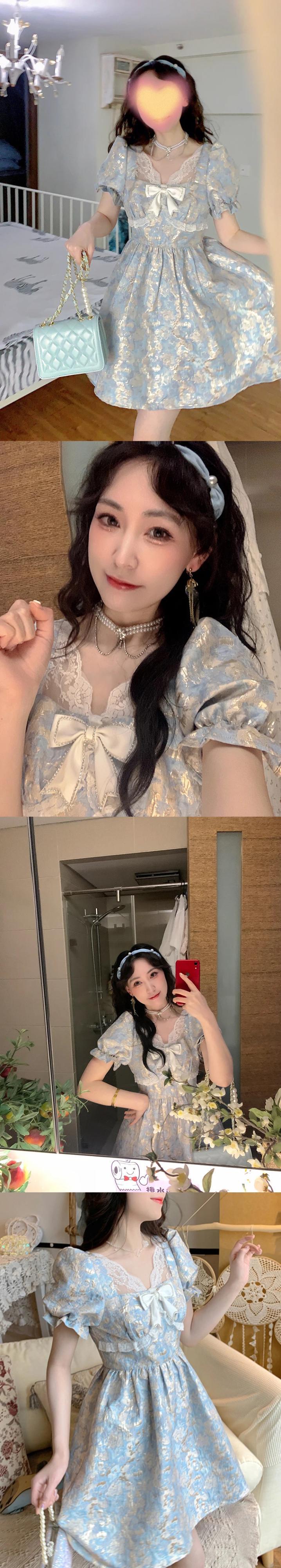 送料無料 ヴィンテージ夏 2023 ショートパフスリーブロリータスタイルワンピースミニドレス女性パーティー サマー 夏物 ビンテージ AE008878799954417307