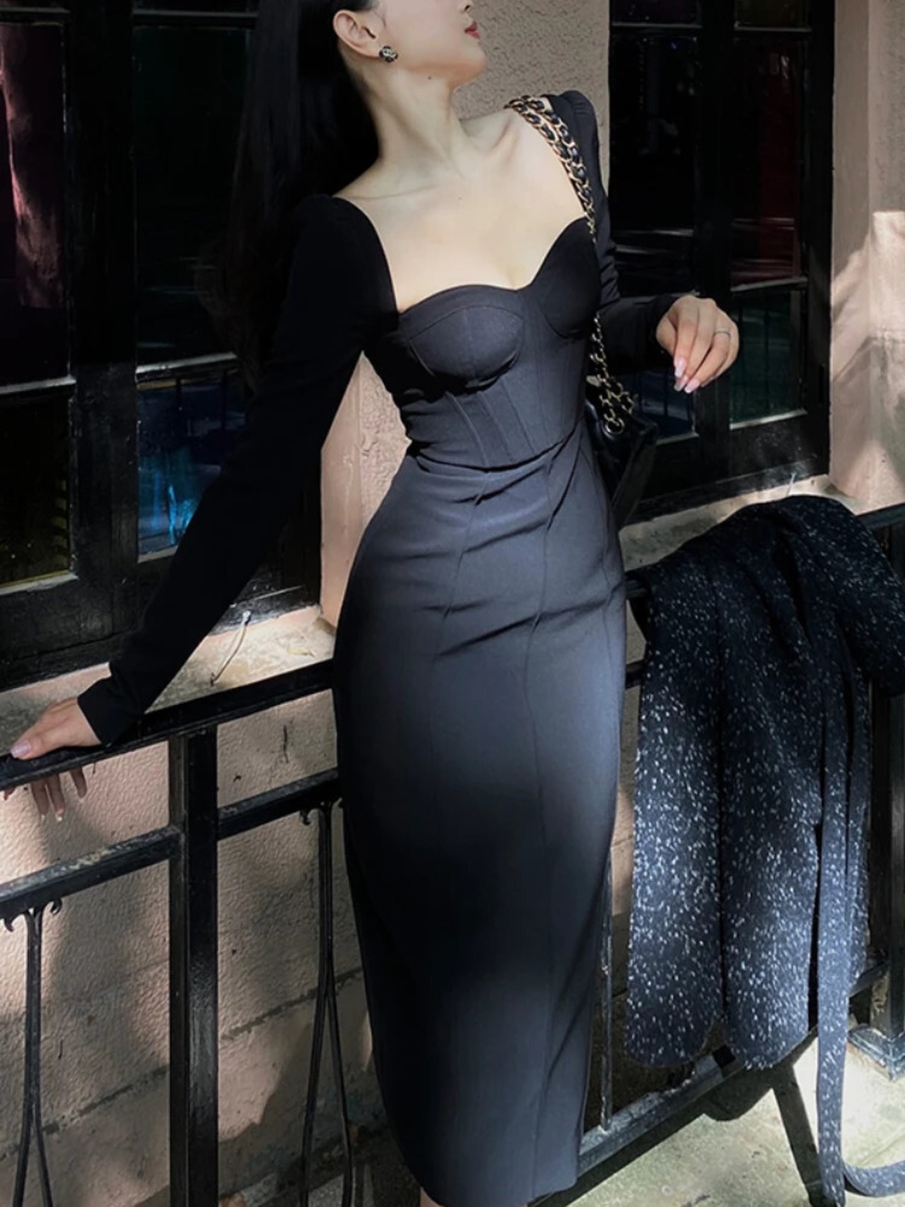 送料無料 ヴィンテージシース包帯セクシーな V ネックソリッドウェディングマキシドレス女性パーティー長袖スリムミディドレス秋 2022 ロング オータム 秋物 Vネック ソリッドカラー ビンテージ AE008878737423750753